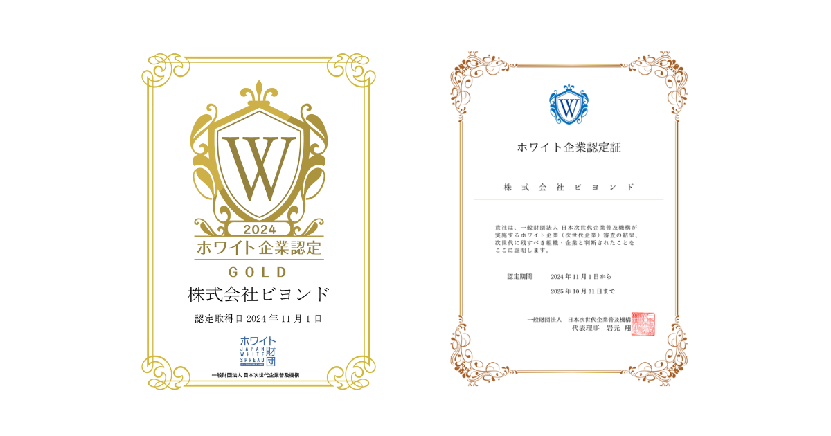 当社は、2024年11月1日付けで、一般財団法人日本次世代企業普及機構(通称:ホワイト財団)が企業のホワイト化を総合的に評価する認定制度「ホワイト企業認定」にて、昨年に続き『ゴールド』を取得しました。