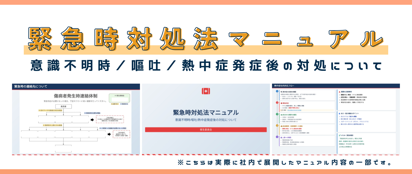 さらに、熱中症や急な体調不良に備えたマニュアルも作成し、