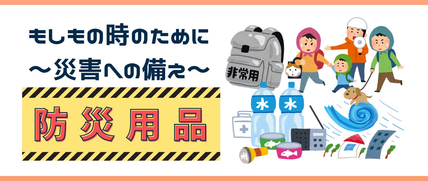 災害時に備え、防災グッズや非常時備品を