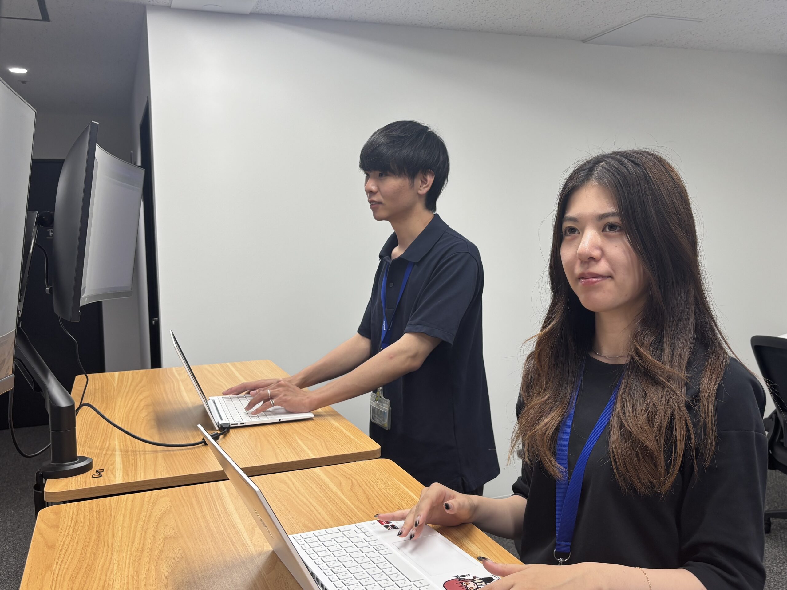 Looking back at his first time in the company, he said he was thinking, "I want to be a student, still!", and "Can I really become an engineer, who has no connection to IT?", but now he has changed his mindset, saying, "It's different from that of a student, and it's fun to work for working adults," and "I can become an engineer even if I have no experience."