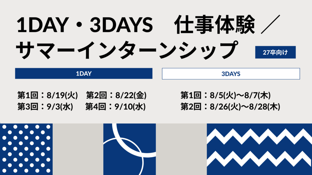 *This internship is scheduled to be conducted offline, but depending on weather conditions such as typhoons, the internship may change to an online hybrid format. Please be aware that we will contact you in advance if any changes occur. |