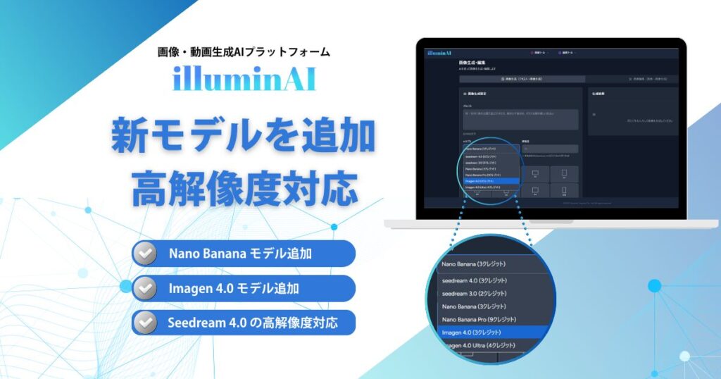 【プレスリリース】生成AIプラットフォーム「illuminAI」が大型アップデート!Google系モデル「Nano Banana」「Imagen 4」を追加
