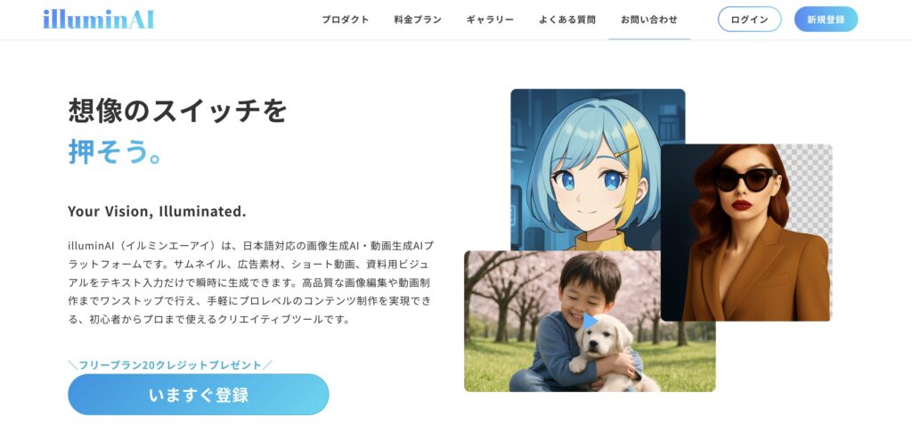AI画像・動画生成プラットフォーム「illuminAI(イルミンエーアイ)」は、テキスト入力だけで高品質な画像と動画を瞬時に生成できる、日本語完全対応のクリエイティブプラットフォームです。