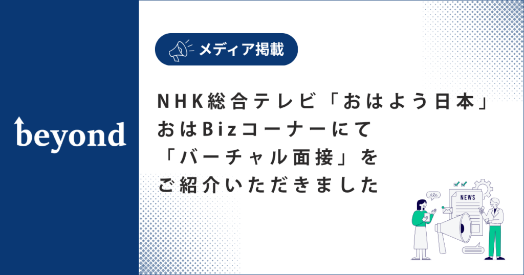 NHK 的“Ohayo Nippon OhaBiz”节目介绍了我们的“虚拟面试”服务。 2026.03.30 消息 2026年3月30日,我公司的新毕业生招聘计划“虚拟面试”在NHK综合电视台的“NHK NEWS Ohayo Nippon”经济新闻节目“OhaBiz”中进行了报道。 您可以在“NHK ONE”上观看错过的直播。 广播内容 标题 我们通过独特的面试流程来招聘人才。 程序 NHK 新闻 Ohayo Nippon OhaBiz 角 | NHK综合电视台 播出日期 2026年3月30日,星期一 档案 https://news.web.nhk/newsweb/pl/news-nwa-topic-nationwide-0002641 点击这里了解 2027 届毕业生的“虚拟选拔流程”。 ▼点击此处申请参加线上选拔流程 【线上选拔流程】2027届应届毕业生招聘(大阪、横滨、四国)【限时优惠:截止至4月20日】 我们首席执行官原冈的采访已在网络媒体“大阪人”上发表。 推荐文章 推荐 【2025届毕业生】“人工智能与虚拟面试”申请期限延长通知 消息 【媒体报道】《虚拟访谈》亮相@Jinji。 消息